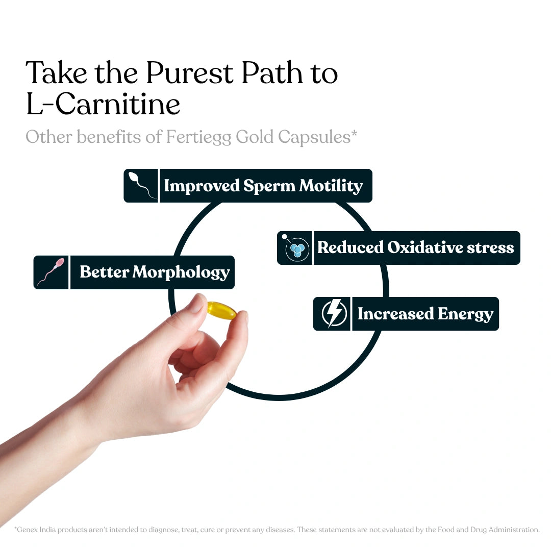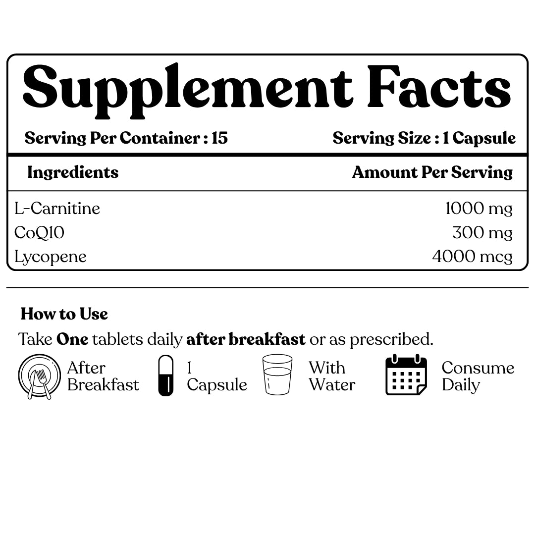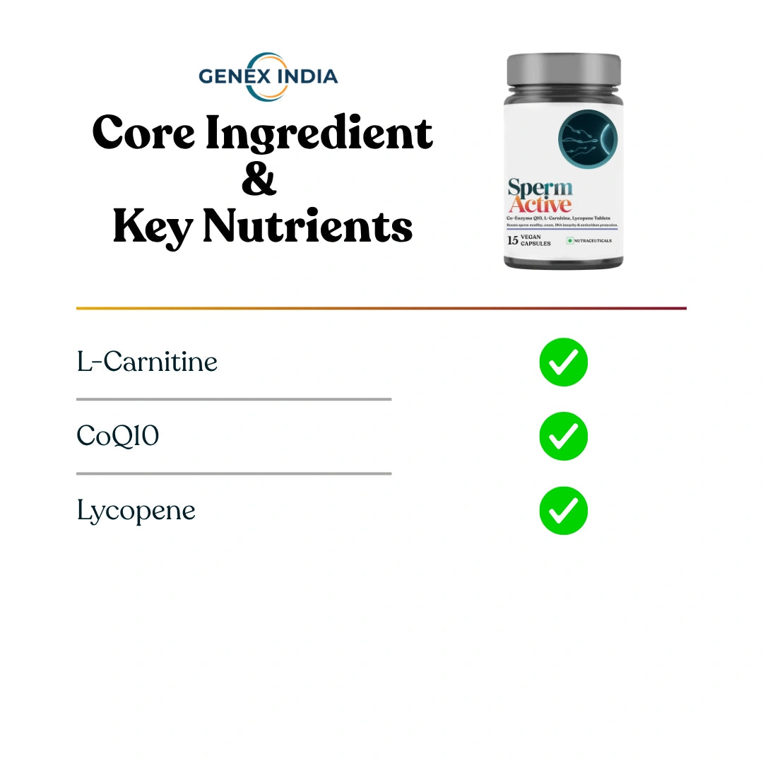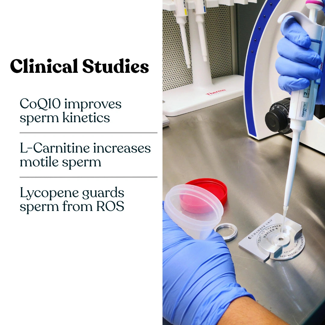 Each nutrient targets a key fertility parameter — Carnitine for motility, CoQ10 for energy & morphology, and Lycopene for DNA protection — helping you rebuild sperm strength from within.